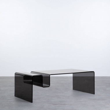 Set Of 3 Nesting Tables In Curved Glass 90 X 50 X 38 Cm Qechic