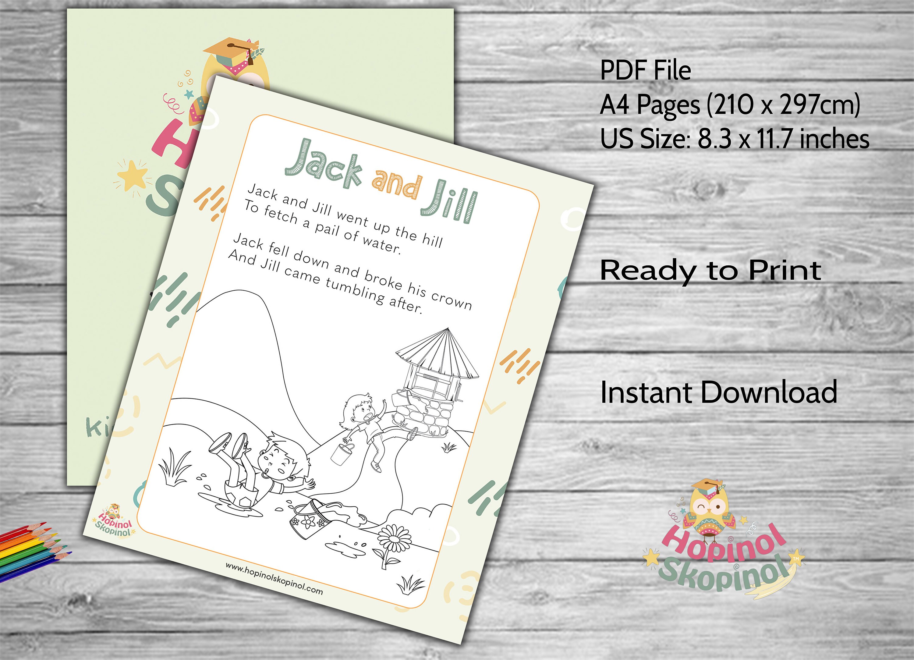 Nursery Rhyme Colouring Page Jack And Jill Kids Colouring Etsy