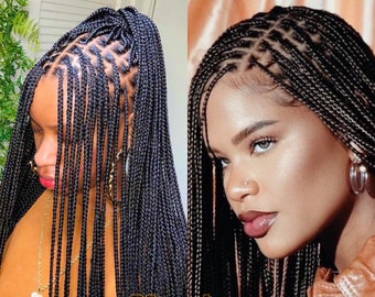 Knotless Braided Wig For Black Women Handmade Box Braid Wig Etsy